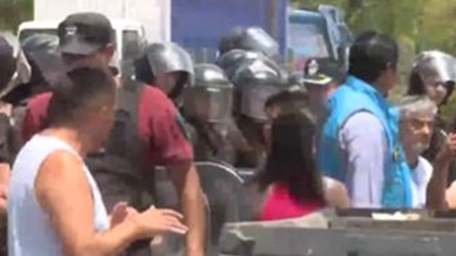 Bajo el rayo del sol, vecinos de Villa Lugano protestan en la autopista Dellepiane por los cortes de luz