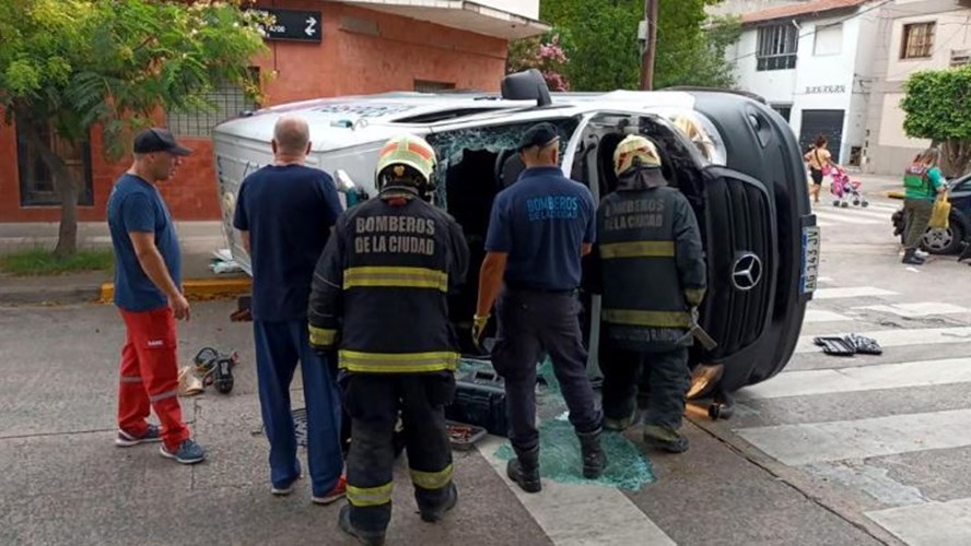 El hecho ocurrió cerca de las 12:30 en la esquina de Oliden y Martiniano Chilaver, donde por causas que se deben establecer chocaron un auto y una ambulancia, que volcó luego del impacto.