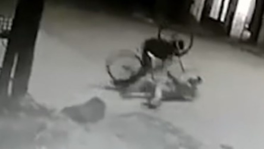 También se ve en la filmación que el delivery se vuelve acercar a Coria, le saca el par de zapatillas y se sube a su bicicleta recuperada