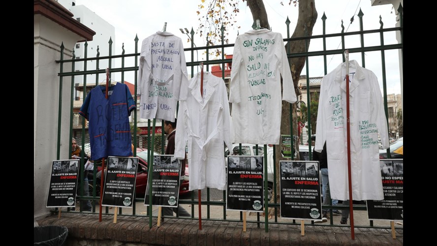 La iniciativa tuvo como objetivo visibilizar la crítica situación presupuestaria y salarial que está atravesando el hospital escuela de la UBA.