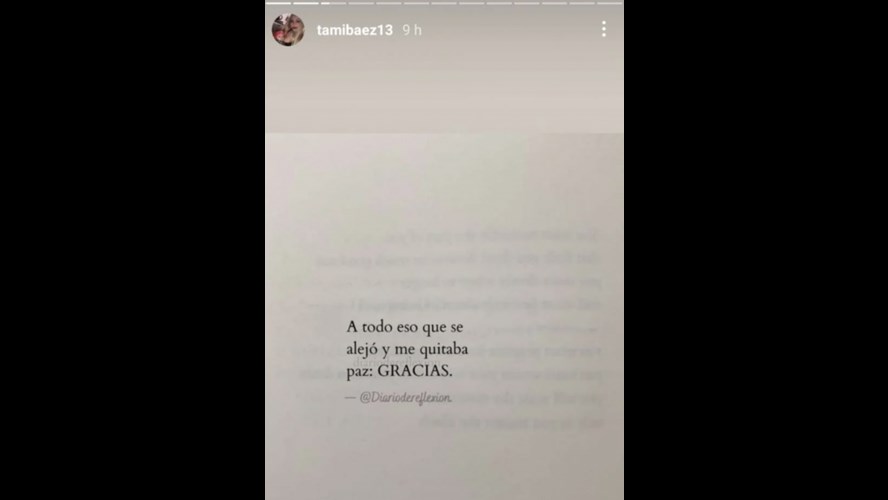 Ahora Báez compartió en su cuenta de Instagram la mañana de este lunes: "A todo eso que se alejó y me quitaba paz: GRACIAS". ¿El mensaje estará dedicado para L-Gante?