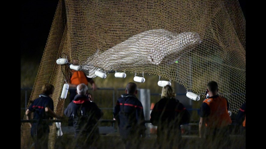 Los 24 buzos y el resto de rescatistas implicados en la operación necesitaron seis horas para conseguir colocar en la red a la beluga en una esclusa en la localidad de Saint-Pierre-la-Garenne, para colocarla primero en una barcaza de agua salada y luego llevarla en un camión hacia el océano.