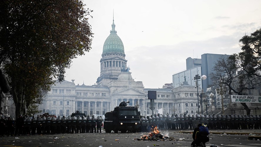 El gobierno de Javier Milei consideró esta tarde que los incidentes protagonizados por manifestantes de izquierda y del peronismo en las inmediaciones del Congreso durante el tratamiento de la Ley de Bases buscan "interrumpir la sesión" en el Senado, y al respecto señalaron que no van a "ceder" a ese intento.