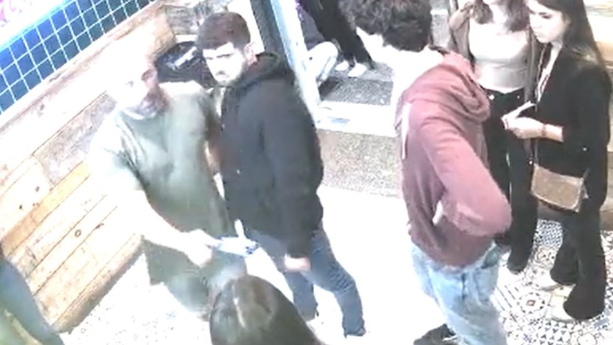 Las cámaras de seguridad de una pizzería en España filmaron el momento exacto en que dos hombres ingresan al local para robarle a unas clientas sin que ellas lo notaran.